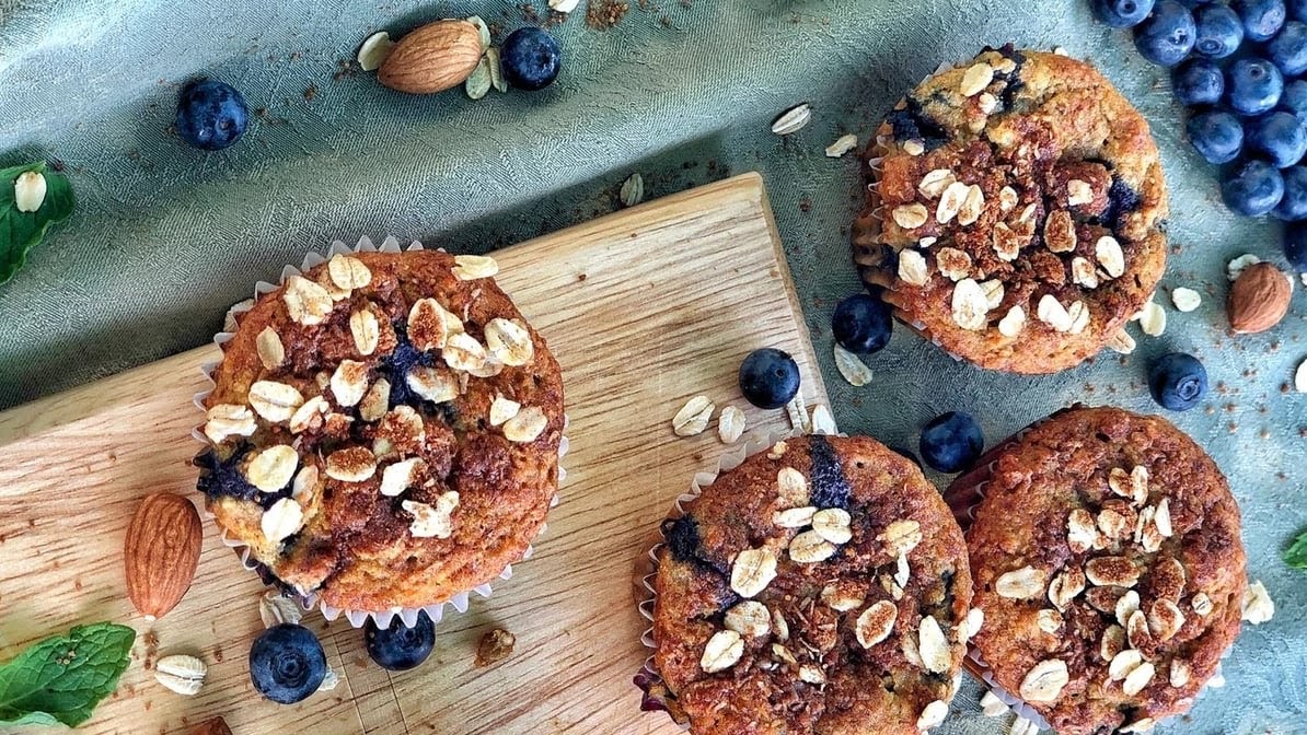 Almond flour, rolled oats, flax, bananas, maple syrup, blueberries, coconut.
